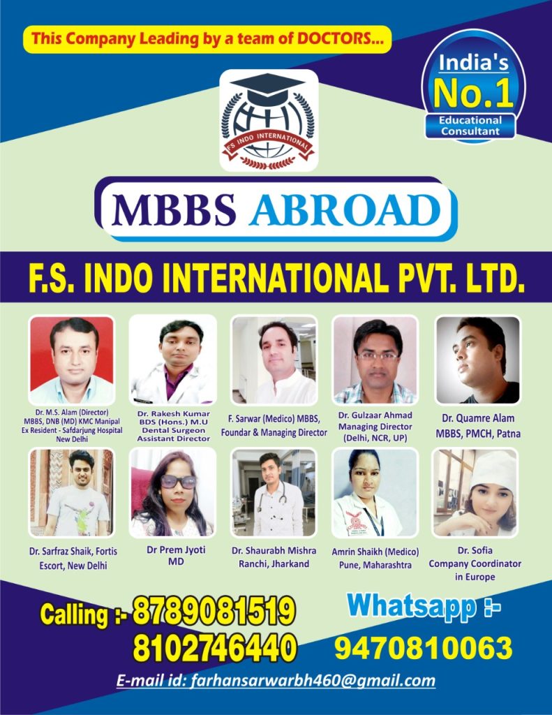 I’d like to extend a warm welcome to the F.S. INDO INTERNATIONAL PVT LTD. I’m glad to hear that you’re eager to join our consultancy. You’re joining the field of medical education at a time when the future is promising and full of opportunity. We recognise that picking a medical school is among the most crucial steps in pursuing a career in medicine. Nowadays, knowledge is pervasive everywhere, and fresh technologies, abilities, and opportunities are always developing. The breadth of professional endeavours is broadening, therefore there is now a lot more opportunity for the younger generations to unleash their skills and attain greater heights of success. You must also be aware that this new circumstance presents a number of difficulties. We must be prepared and have the necessary skills and capabilities to master these more recent disciplines of knowledge since the educational landscape both domestically and internationally has become rather active and competitive.